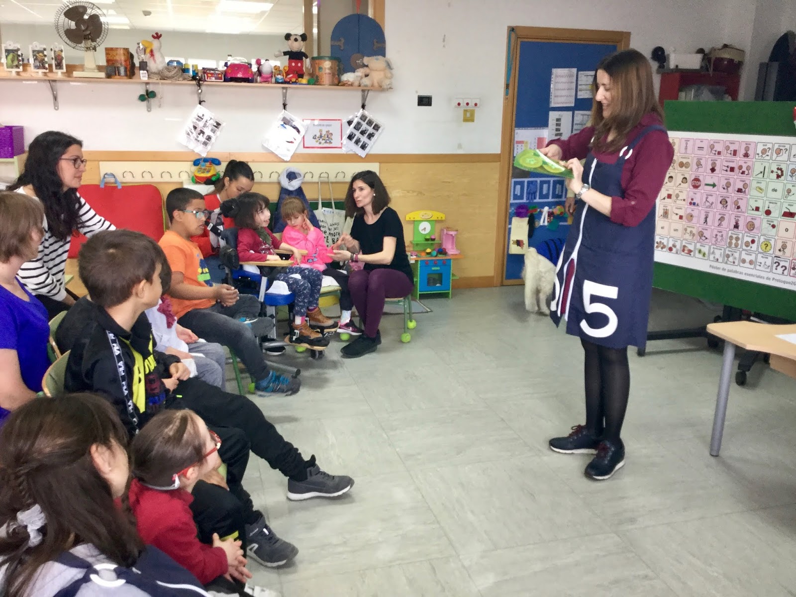 Una vez dentro de clase, todos los hemos saludado y, por parejas, hemos salido a acariciar a Neska.